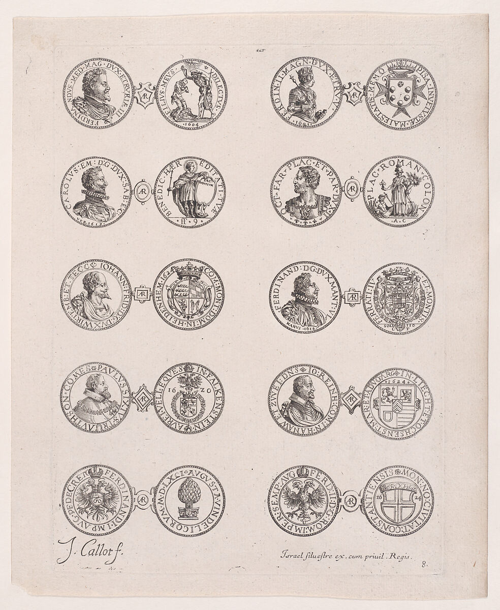 - Title: Plate 8, Featuring 10 Coins Issued by European Princes in the 16th and 17th centuries, from "Les Monnaies" (The Currencies)