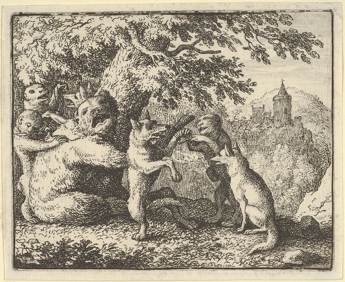 - Title: On Order of the Lion, a Piece of Skin is Taken from the Bear, A Piece of the Front Paws of the Wolf and a Piece from the She-Wolf's Hind Paws are Skinned from Hendrick van Alcmar's Renard The Fox