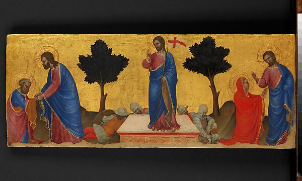 This panel is from the base (predella) of a complex altarpiece and dates to the 1360s.