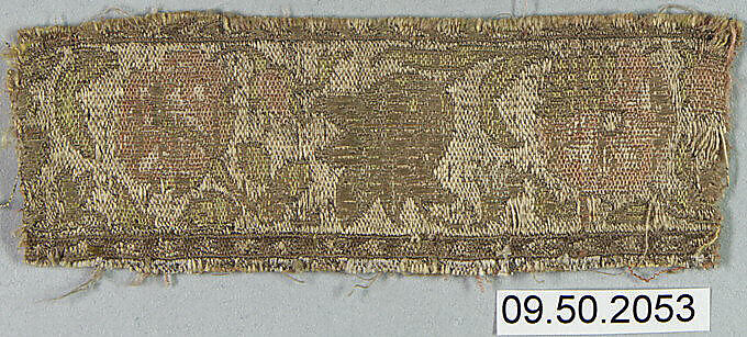- Medium: Silk, metal thread and linen (?); plain weave, brocaded