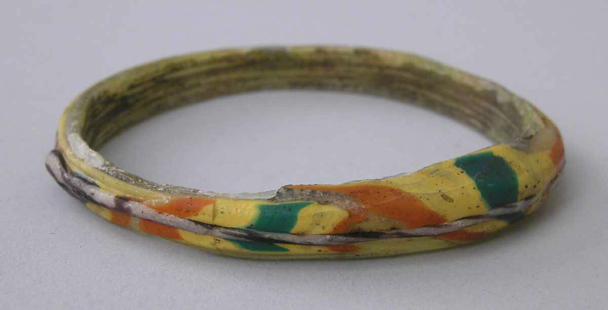 The earliest known examples of this type of seamless mosaic glass bracelet are from the late thirteenth century; it continued to be produced well into the nineteenth century at Hebron, in Palestine. This bracelet, together with thirty-three others in the collection, comes from UpperEgypt and was probably made during the Mamluk period.