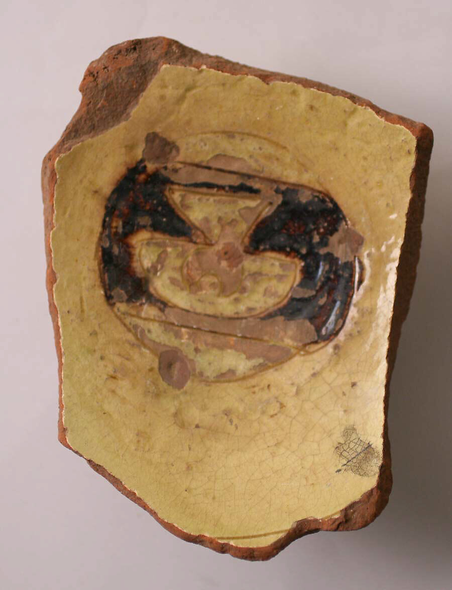 - Medium: Earthenware; incised decoration through white slip and coloring under transparent glaze.