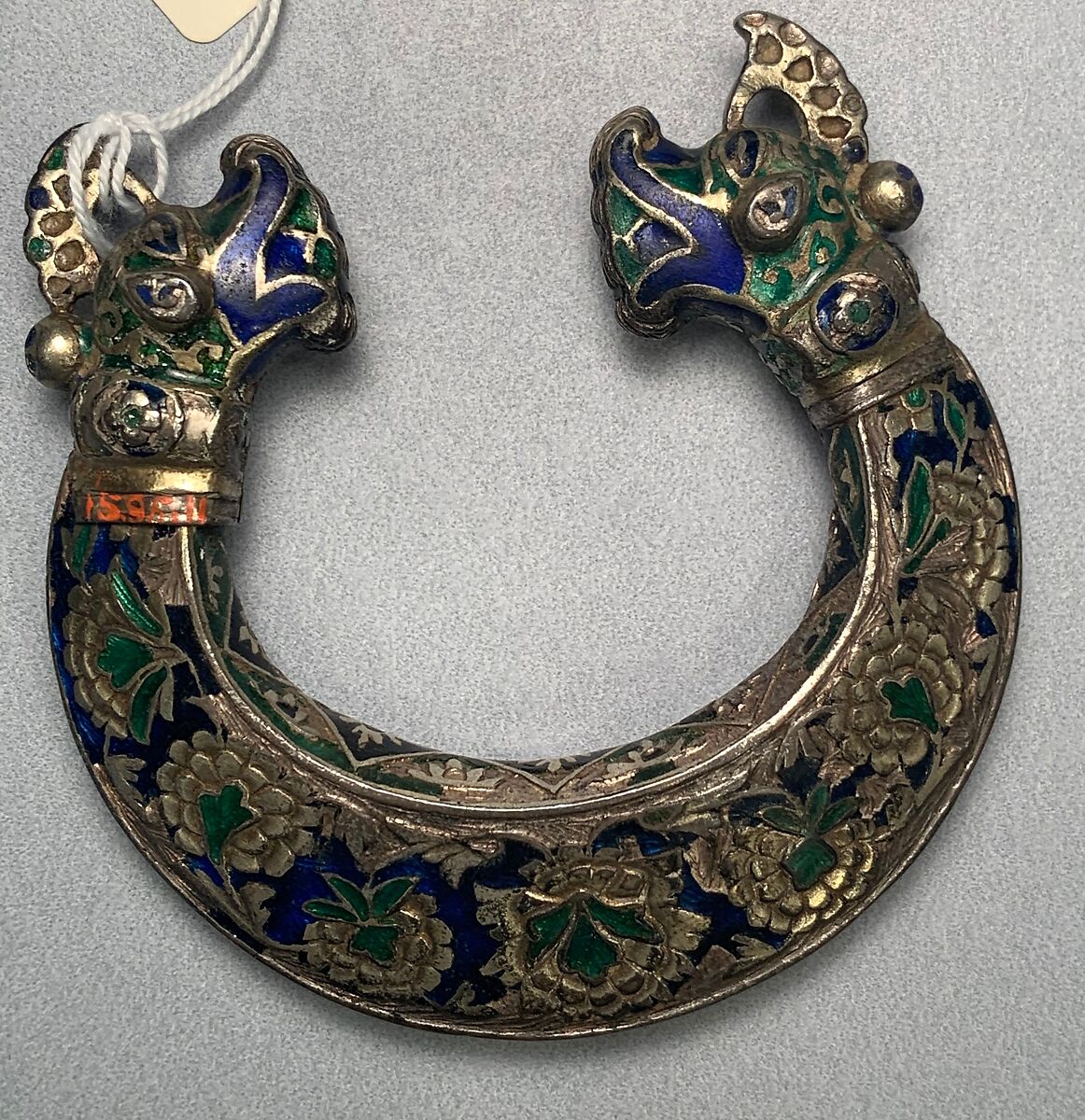 This ornament was formerly in the collection of American artist and designer Lockwood de Forest (1850–1932) who purchased many jeweled objects while traveling in India between 1879–1881. Today, his collection of Indian jewelry in the Met serves as a near-comprehensive assemblage of late nineteenth century bodily adornment.