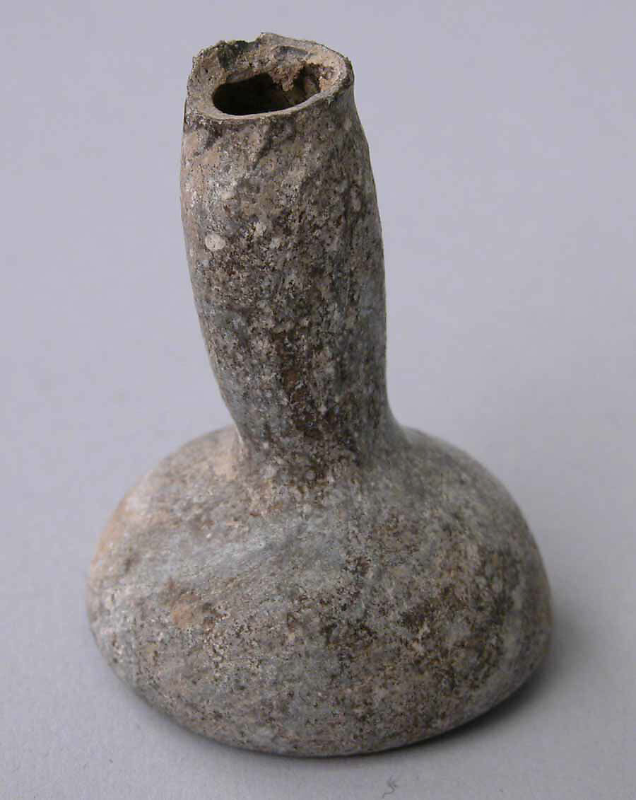 This glass bottle was excavated in Ctesiphon, the Sasanian metropolis and administrative capital conquered by Arab Muslim armies in 637. The city continued to be inhabited throughout the era, when it was known in Arabic as al-Mada’in, or "the cities", because of the expansive area it encompassed. Arab and Persian historians and poets indulged in describing al-Mada’in/Ctesiphon’s grand monuments. Muslim rulers also celebrated the glory of these monuments, which through time had acquired symbolic significance due to their association with the city’s imperial past. This was the case of the Taq-i Kisra, an impressive colossal ivan (a vaulted hall with one side open) that was partially dismantled to reuse its bricks in caliphal buildings in the new capital of Baghdad.