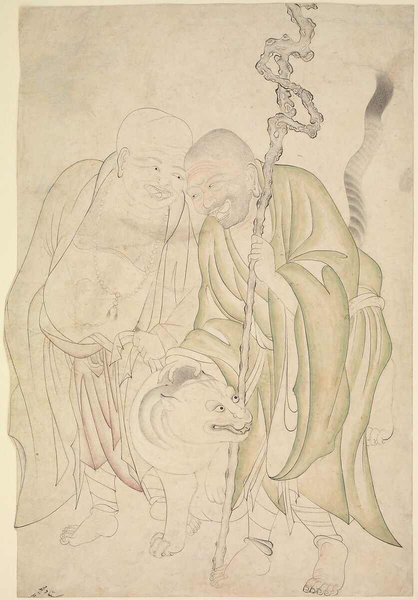 Images of ascetic figures such as these, referred to as lohans in Buddhist tradition, appear regularly in Chinese art. This drawing, however, is inscribed in the lower left "Siyah Qalam" (literally, Black Pen), linking this tinted drawing to a series of similarly inscribed pieces preserved in albums in Istanbul's Topkapi Palace Library. While these materials require further investigation, signed and dated pieces in the albums fall mostly within the reign of the Aq Quyunlu ruler Sultan Ya'qub (r. 1478–90), who reigned at Tabriz. Drawings such as this one may have been practice studies, after Chinese originals.