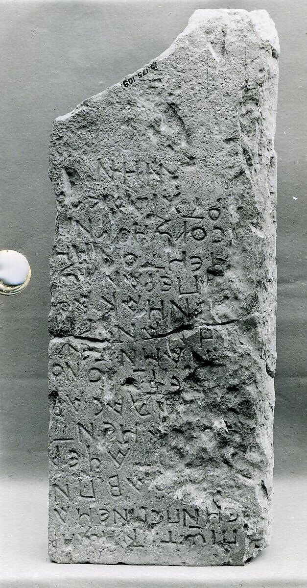 Funerary stelae from the Byzantine period in Egypt are thought to have been produced in quantity, then modified for individual use. Inscriptions were often added to identify the deceased.