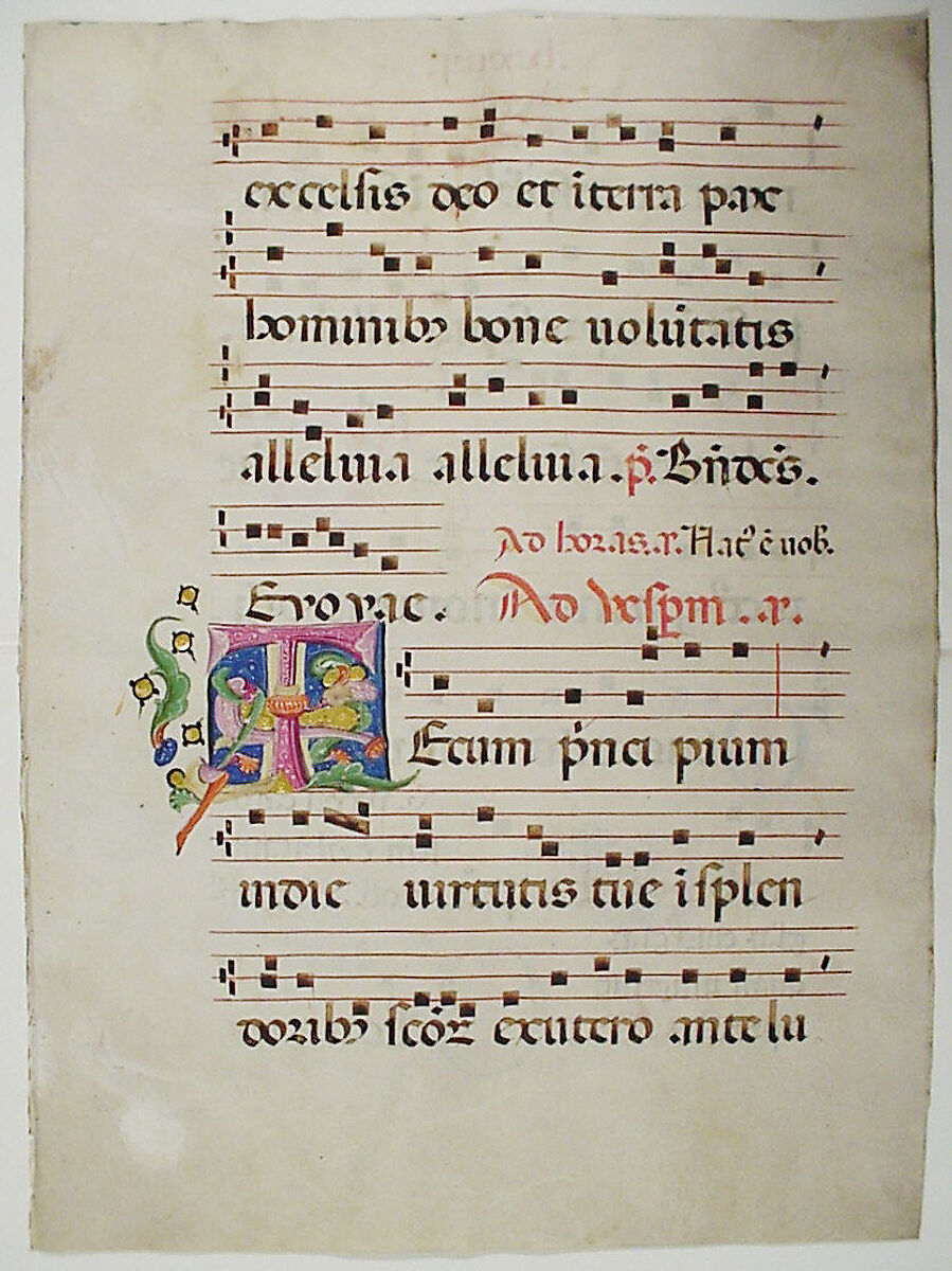 - Title: Manuscript Leaf with Initial T, from an Antiphonary