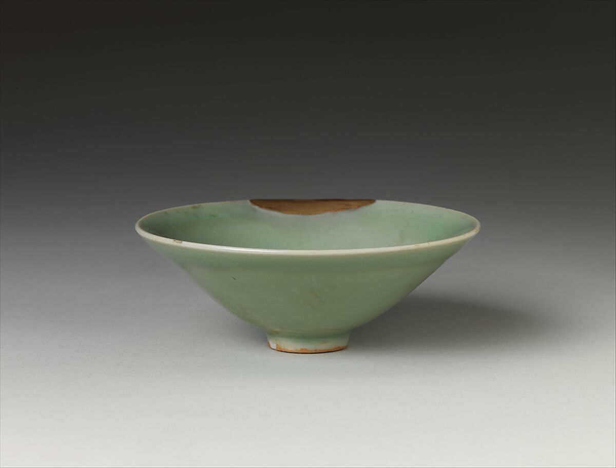 Refined, pale bluish-green celadon wares like this tea bowl are characteristic of ceramics produced at the Longquan kilns. Chinese celadons have been highly valued in Japan since the fourteenth century, when the Ashikaga shoguns built their collections. Because kintsugi is a technique unique to Japan, its presence on this tea bowl suggests that the object was once used and cherished there. In China, by contrast, broken ceramics were typically mended with metal staples.