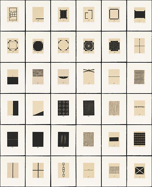 - Medium: Portfolio of 36 woodcut, printed chine collé with pen and black ink on paper