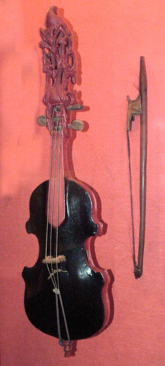 Also called the thro, the Burmese violin illustrates how local musicians adapted ideas introduced by the French in the early 18th century and later by the British. European instruments including the piano were assimilated into existing musical practices, replacing or coexisting with traditional forms. The three-stringed tayàw is played vertically supported by its spike.