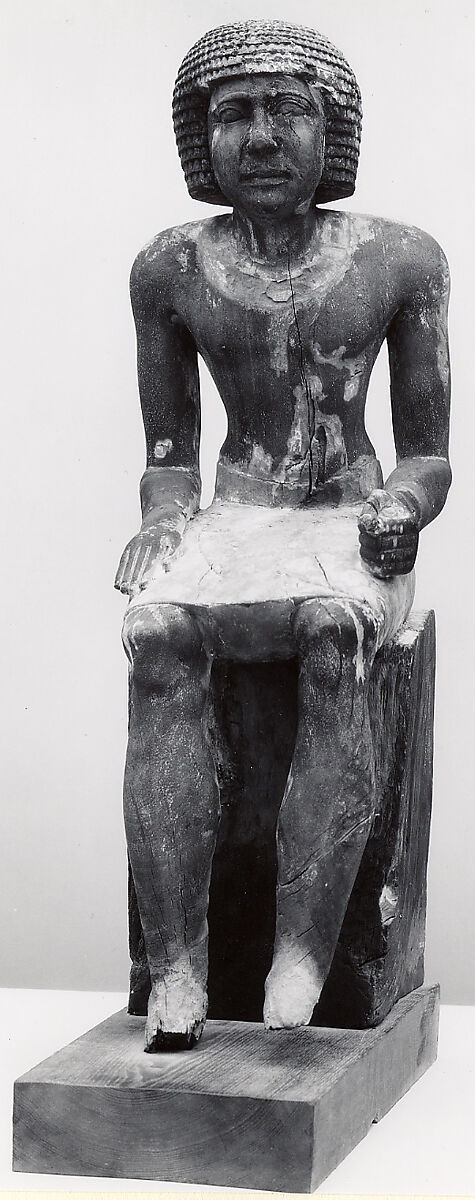 Mitry (previously read as Merti) was a high official and provincial governor. Eleven exceptionally large wooden statues were found in the serdab (statue chamber) of his tomb. Five are in the collection of The Metropolitan Museum of Art (26.2.2 - 26.2.6); five, including two wooden scribes, are in the Egyptian Museum, Cairo; and one is in the Medlhavsmuseet, Stockholm.