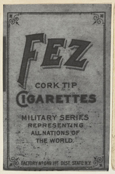 - Title: Facsimile of Verso to Promote Fez Cigarettes, from the Military series (T79) issued by the American Tobacco Company