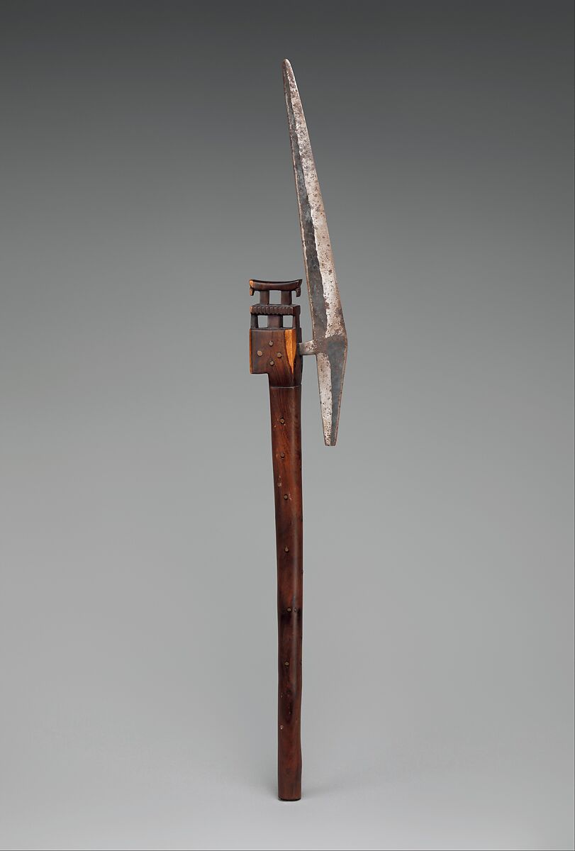 Finely carved axe handles with asymmetrically shaped blades were not meant to be used in battle, but were instead carried by men as accessories at ceremonial occasions. Wielded during harvests, weddings, and chiefly investitures, such artifacts were designed to attract the favorable attention of ancestral spirits. The inclusion of features such as a pair of breasts or a miniature headrest was intended to entice the spirits’ engagement. Headrests offered a conduit for ancestral communication; women’s bodies have been regarded as the source for extending familial lineages.