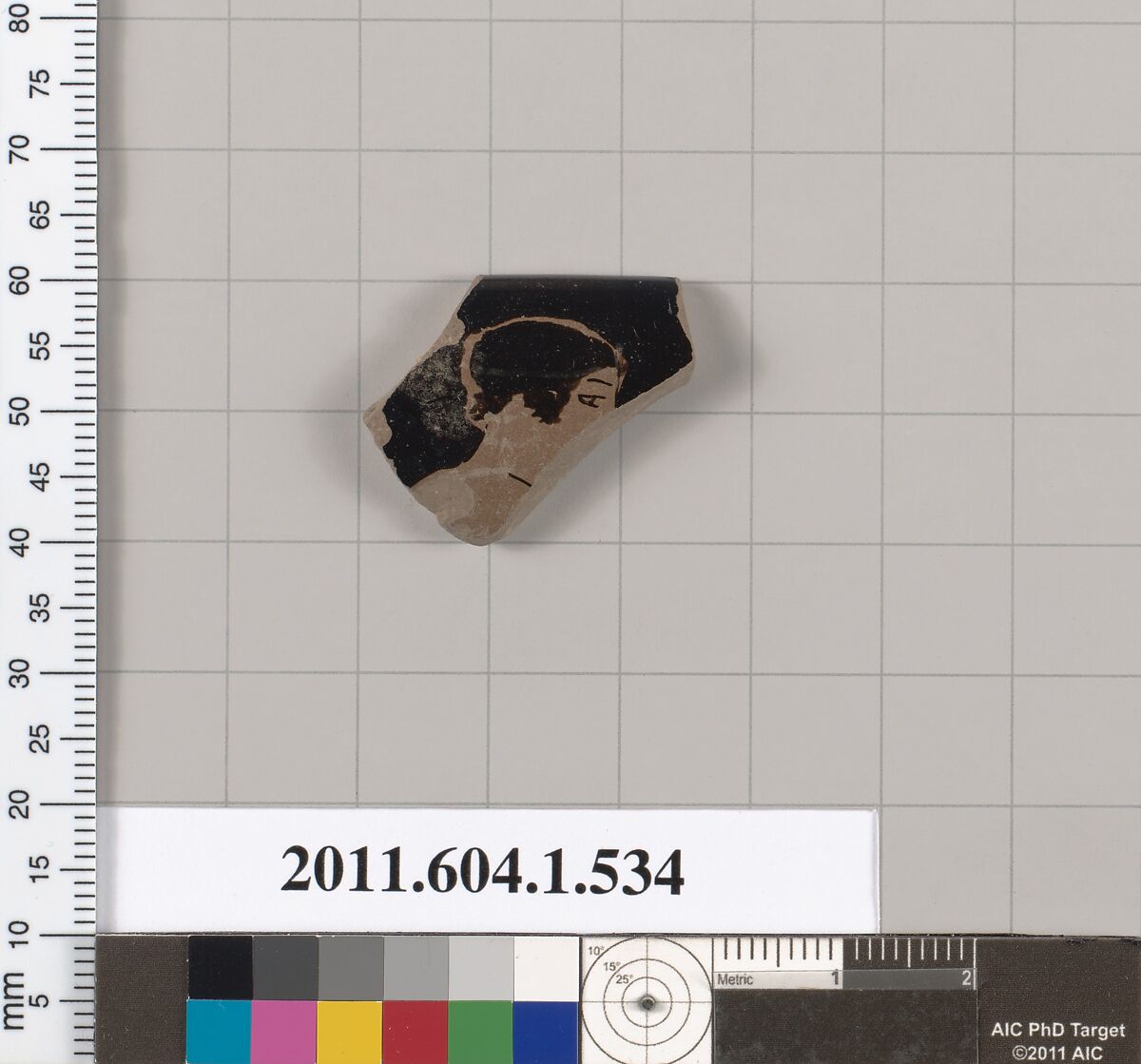 - Title: Terracotta rim fragment of a kylix (drinking cup)