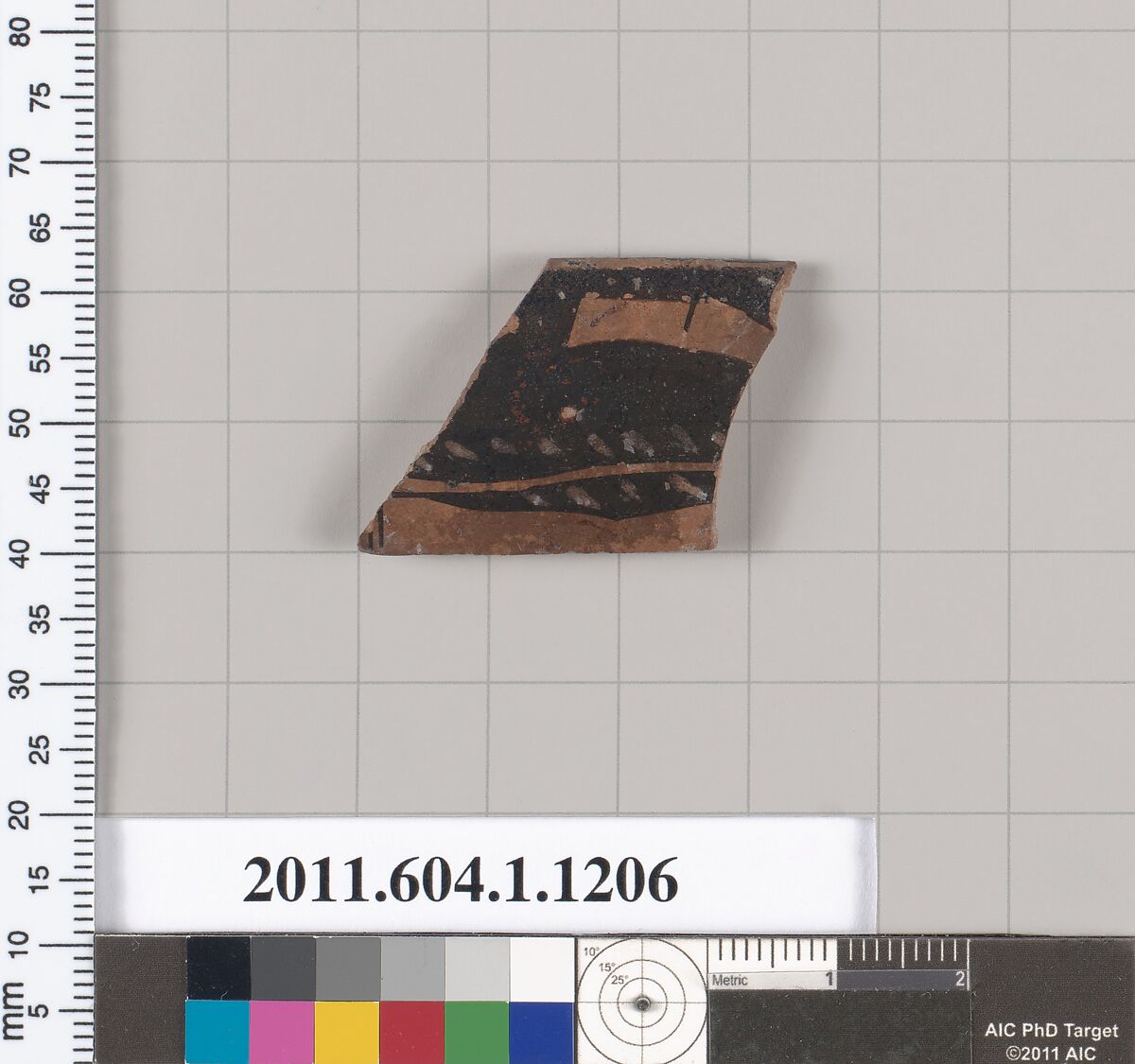 - Title: Terracotta rim fragment of a kylix (drinking cup)