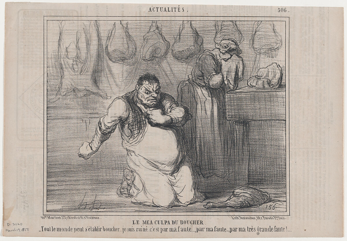 • Title: Le mea culpa du boucher, from Actualités, published in Le Charivari, March 19, 1858