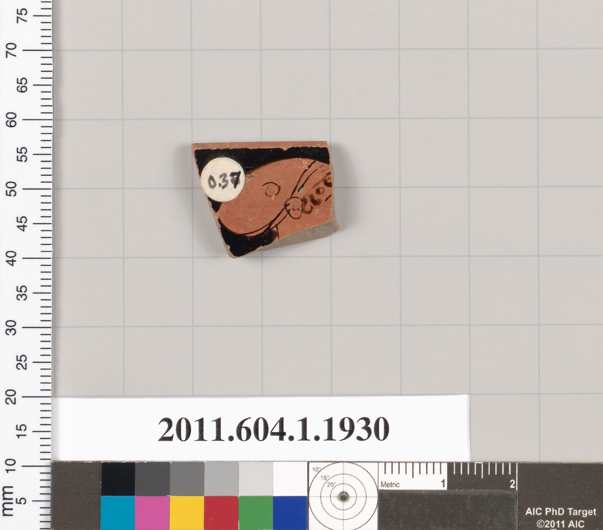 - Title: Terracotta rim fragment of a kylix (drinking cup)