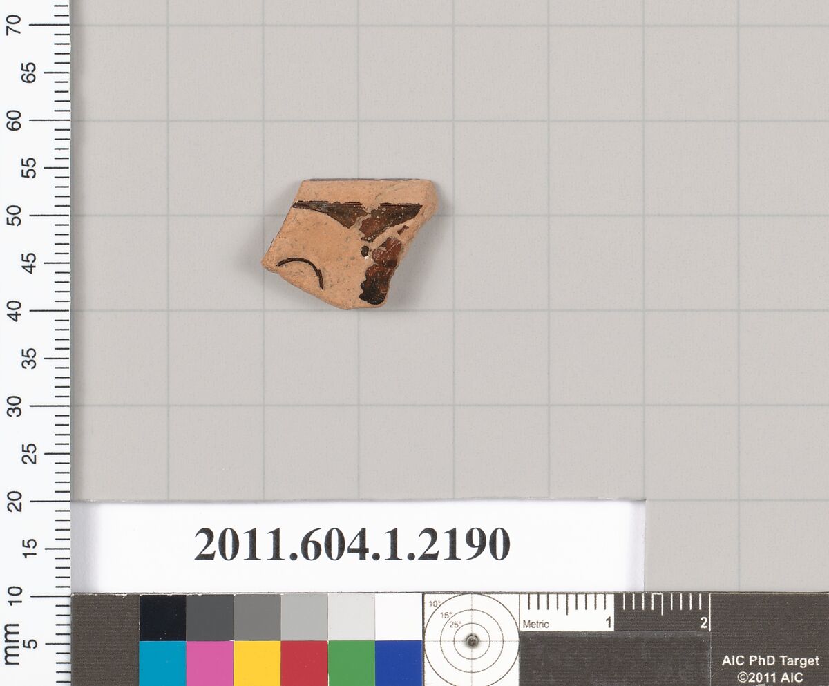 - Title: Terracotta rim fragment of a kylix (drinking cup)