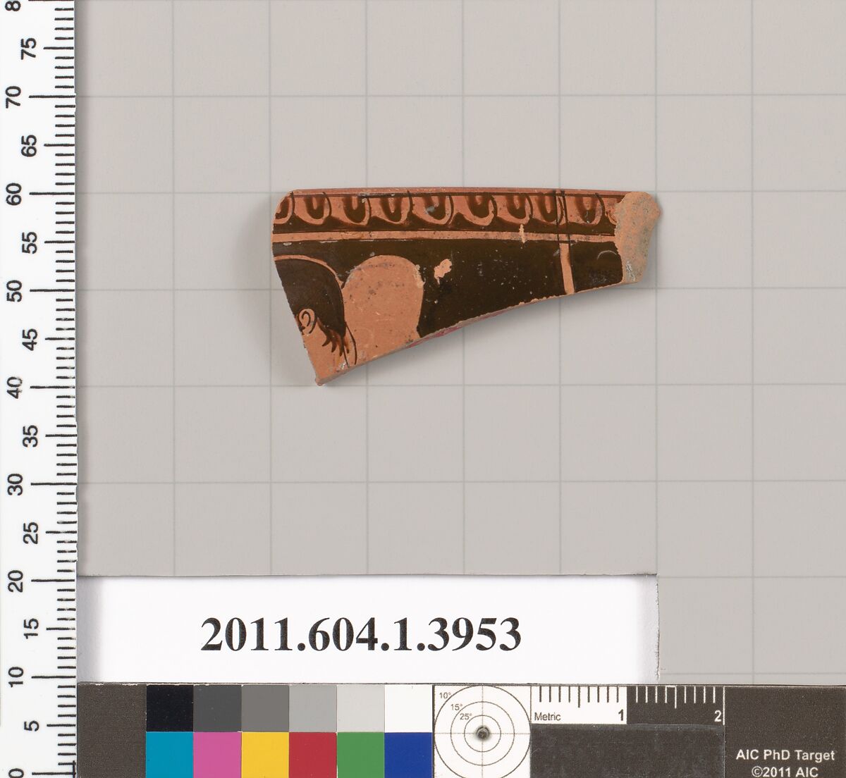 - Title: Terracotta rim fragment of a kylix (drinking cup)