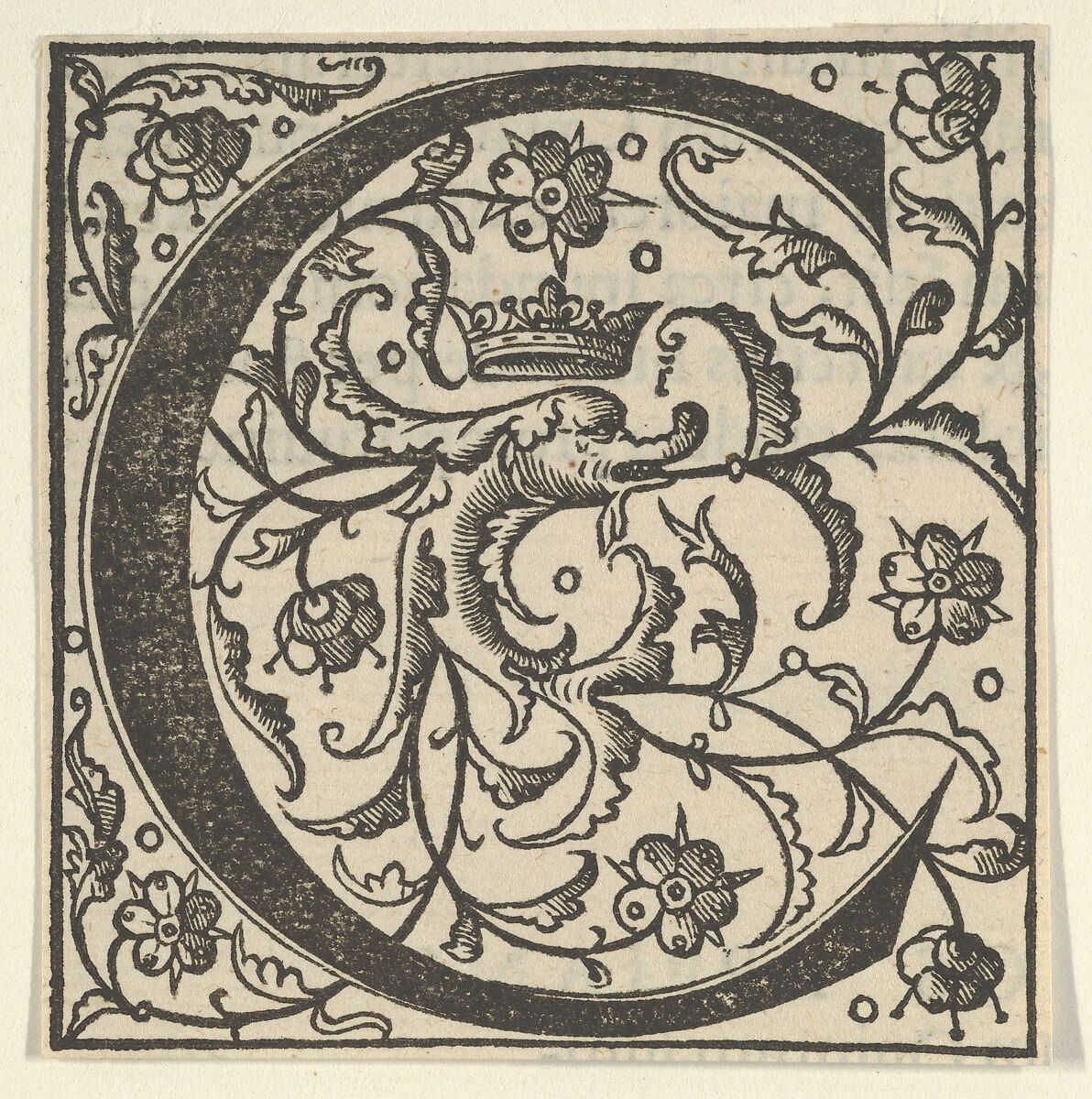 Initial letter C with dolphin and crown
