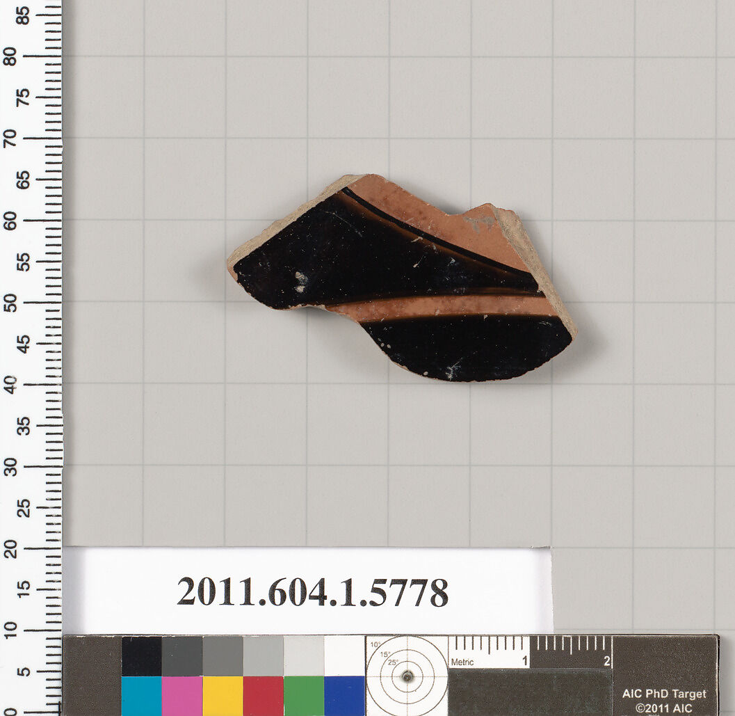- Title: Terracotta fragment of a kylix: eye-cup (drinking cup)