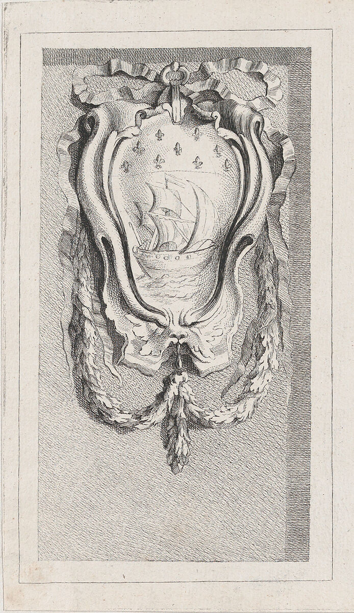 Sailboat within a cartouche, after a bas-relief on the Fontaine des Quatre-Saisons (Paris)