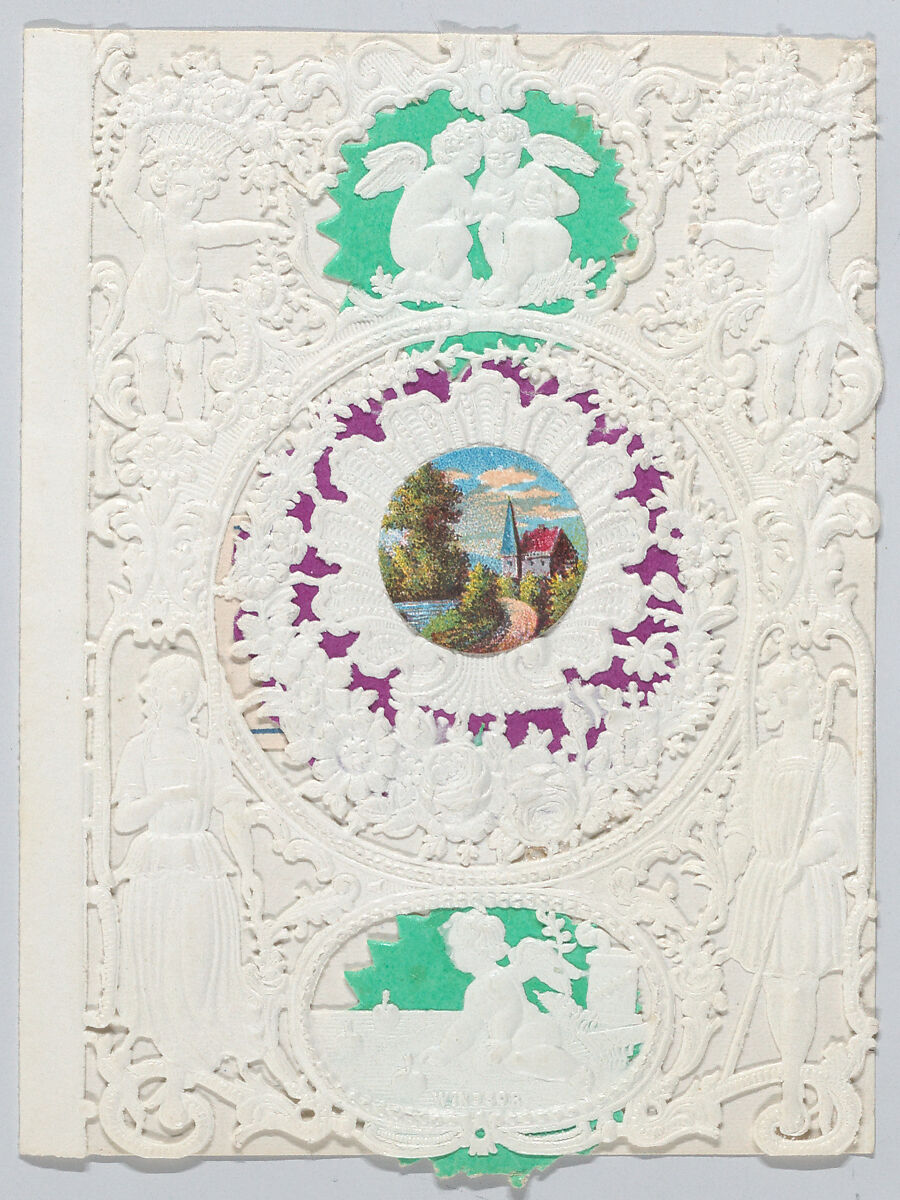 - Medium: Cameo-embossed, open-work lace paper, chromolithography, colored paper