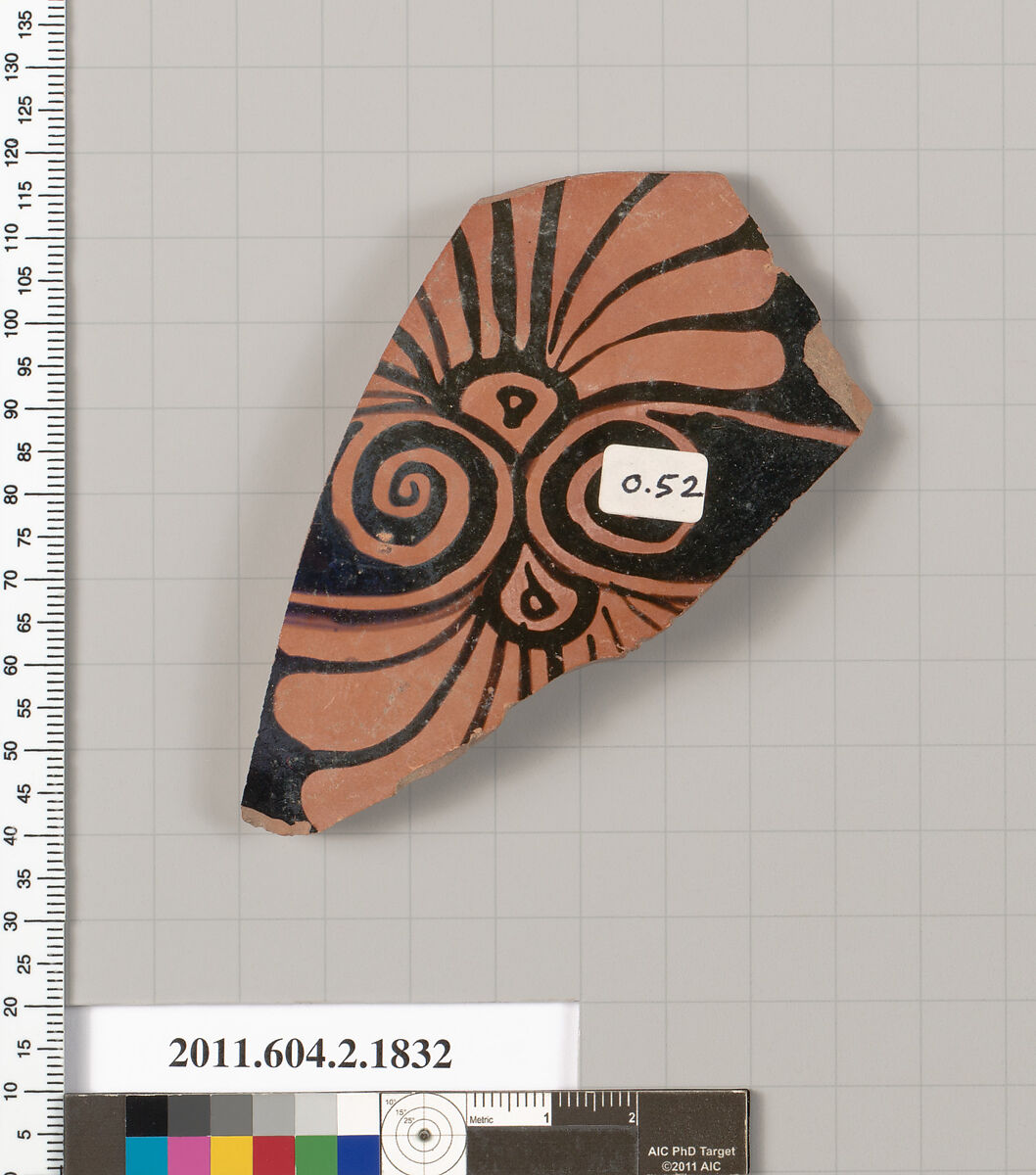 - Title: Terracotta fragment of a skyphos (deep drinking cup)