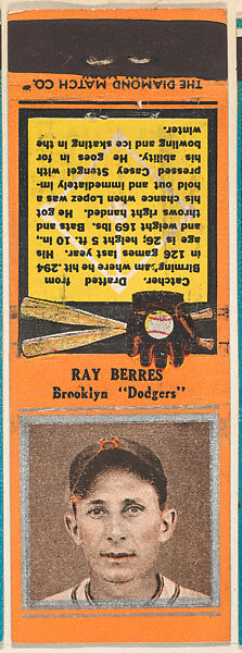 - Title: Ray Berres, Brooklyn Dodgers, from the Baseball Players Match Cover design series (U1) issued by Diamond Match Company
