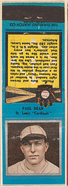 - Title: Paul Dean, St. Louis Cardinals, from the Baseball Players Match Cover design series (U1) issued by Diamond Match Company