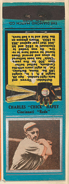 - Title: Charles "Chick" Hafey, Cincinnati Reds, from the Baseball Players Match Cover design series (U1) issued by Diamond Match Company