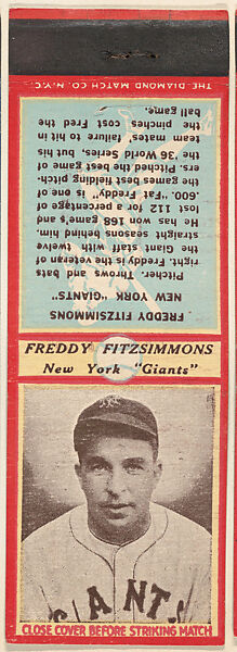 - Title: Freddy Fitzsimmons, New York Giants, from the Baseball Players Match Cover design series (U4) issued by Diamond Match Company