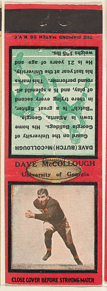- Title: David McCollough, University of Georgia, from the Football Players Match Cover design series (U6) issued by Diamond Match Company