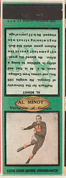 - Title: Al Minot, University of Georgia, from the Football Players Match Cover design series (U6) issued by Diamond Match Company