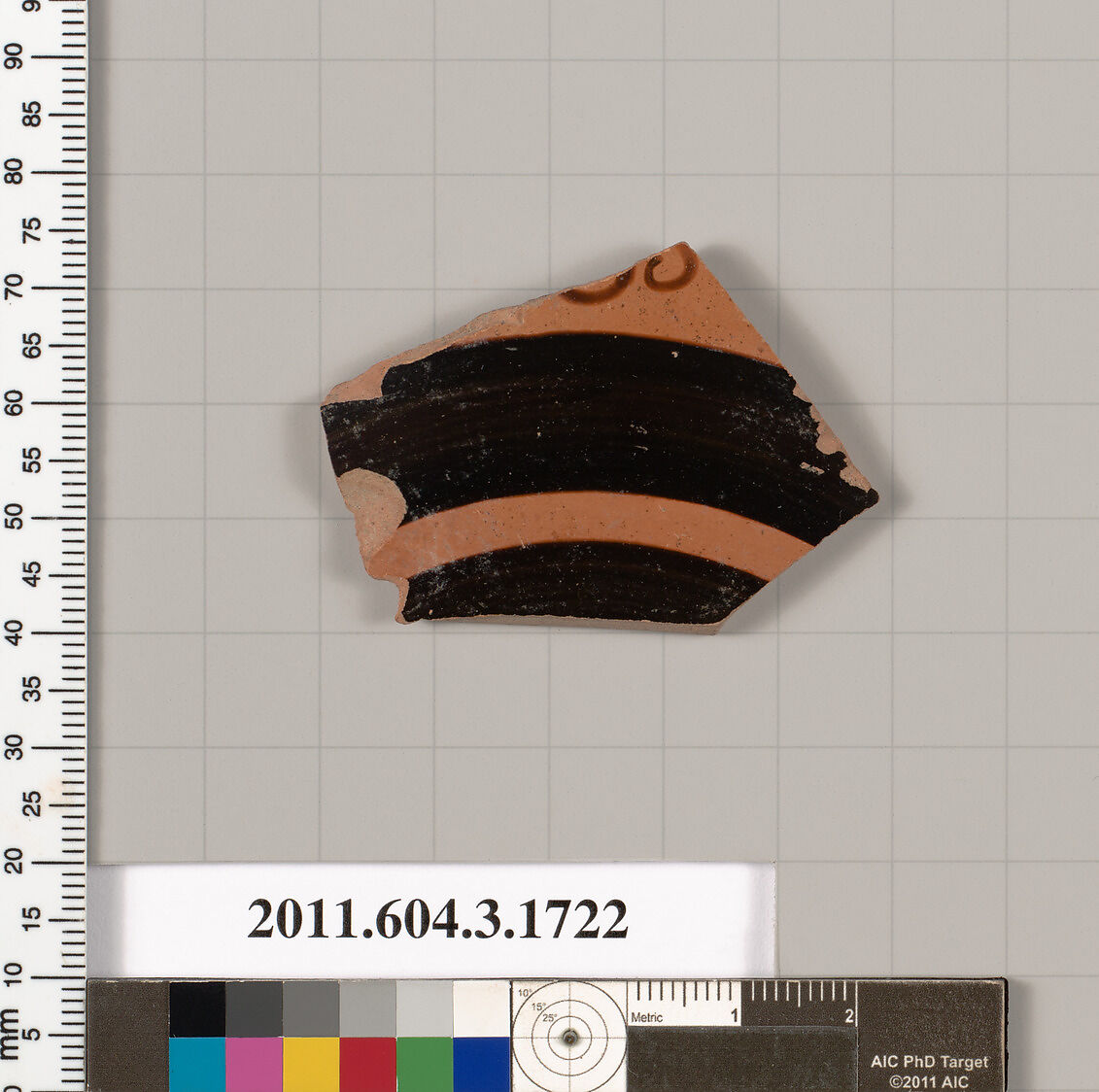 - Title: Terracotta fragment of a kylix: Lip cup (drinking cup)