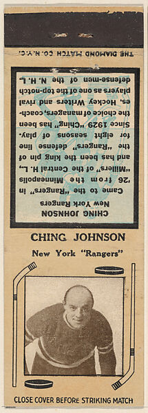 - Title: Ching Johnson, New York Rangers, from Yellow/Tan Hockey Players Match Cover design series (U10) issued by Diamond Match Company