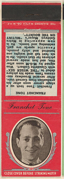 - Title: Franchot Tone from Movie Stars Match Cover design series (U21) issued by Diamond Match Company