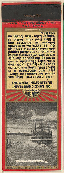 - Title: Lake Champlain, Vermont from New England, Souvenir Views Match Cover series (U40.7)