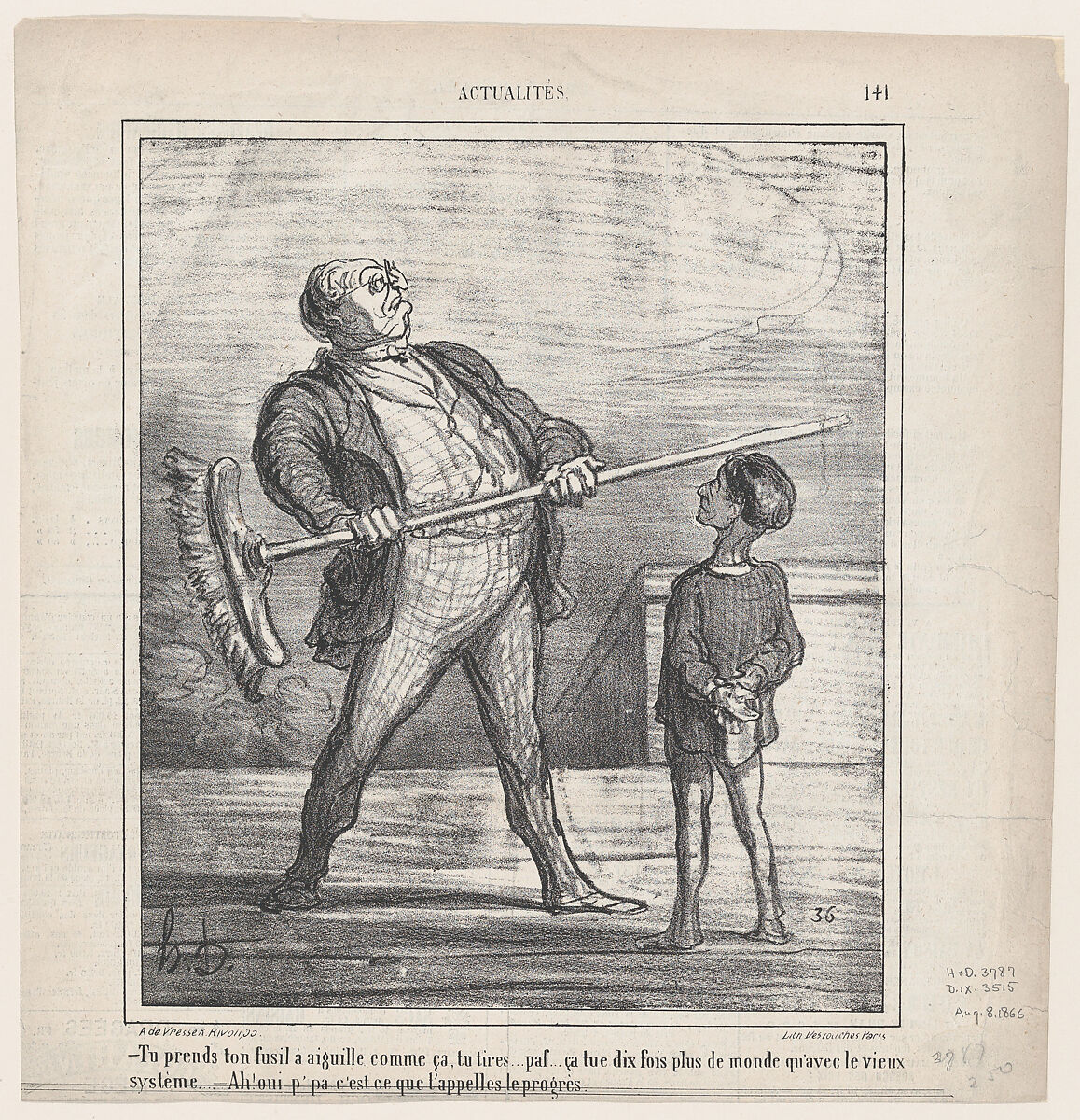 - Title: – You take your pin-gun in your hand like this... you fire... puff... this kills ten times more people than the old system... – Ah, yes papa, this is what one calls progress, from "News of the Day"