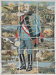 This set of puzzle cards details the history of Bulgaria leading up to the War, touching on geography, industry, and society. On either side of the central figure, Tsar Ferdinand I, are scenes of Bulgaria’s military campaigns throughout World War I.