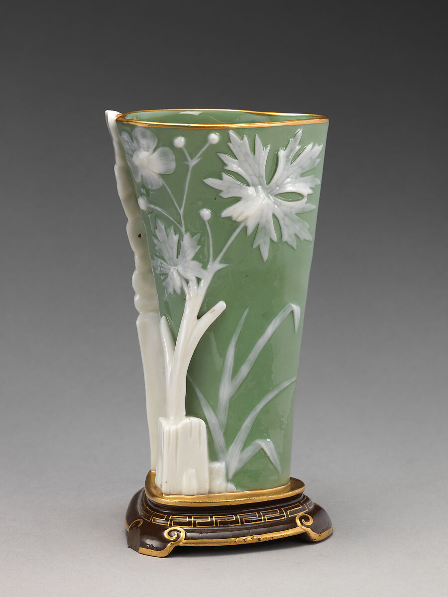 Minton was the most important ceramics factory during the Victorian period and began exhibiting products at the first Great Exhibition of 1851. Founded in 1793 by Thomas Minton at Stoke-on-Trent, the firm initially specialized in transferware pottery before expanding under the ownership of Thomas’s son Herbert Minton, beginning in 1836. Under the ownership of Colin Minton Campbell, who succeeded his uncle in 1858, the factory became recognized as a specialist producer of Aesthetics movement porcelain, which were inspired by a rich array of exotic and eclectic decorative motifs.