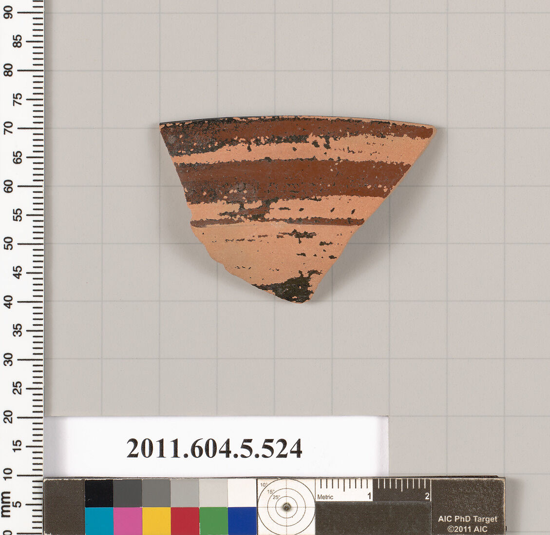 - Title: Terracotta rim fragment of a kylix (drinking cup)