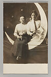 At the height of the picture postcard craze in the early twentieth century, photo studios at beach resorts, state fairs, carnivals, and downtown arcades offered a variety of playful props and backdrops for sitters to pose against. During the same period, there was a resurgence of popular interest in the romance of the Moon, as evidenced in countless Tin Pan Alley songs, such as "Shine On, Harvest Moon" (1908), "By the Light of the Silvery Moon" (1909), and "I’ll Sit Right on the Moon and Keep My Eyes on You" (1912). Given this confluence, it is not surprising that one of the most popular studio props was the "paper moon," a cut-out crescent moon set in front of a backdrop painted with stars and the occasional comet (inspired by the passing of Halley’s comet in 1910). Decades before the first spacecraft were launched into orbit, thousands of individuals commemorated their own imaginary lunar voyages with these charming photographic souvenirs.