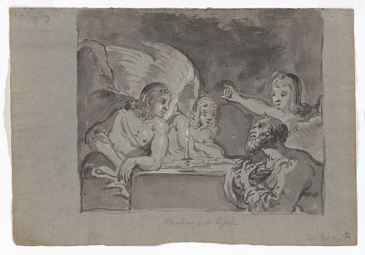 This sheet is one of eighty brush drawings on blue paper by the prolific draftsman and painter Leonaert Bramer that belonged to an album that was disbanded and dispersed in the 1980s. The album is known as the Hofstede de Groot album as it belonged to the eminent Dutch art historian Cornelis Hofstede de Groot around 1930. The drawings in this album are among Bramer's earliest known drawings and some of them may have been created on his early trip to Italy (1619-1627). The drawings, diverse subjects from genre to mythology, to religious scenes, were all rendered within rectangular frames drawn on the larger sheet. Their painting-like compositions suggest that they may have been intended as ideas for paintings.