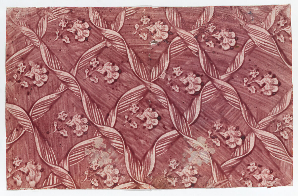 - Title: Paste paper with overall red floral and ribbon pattern