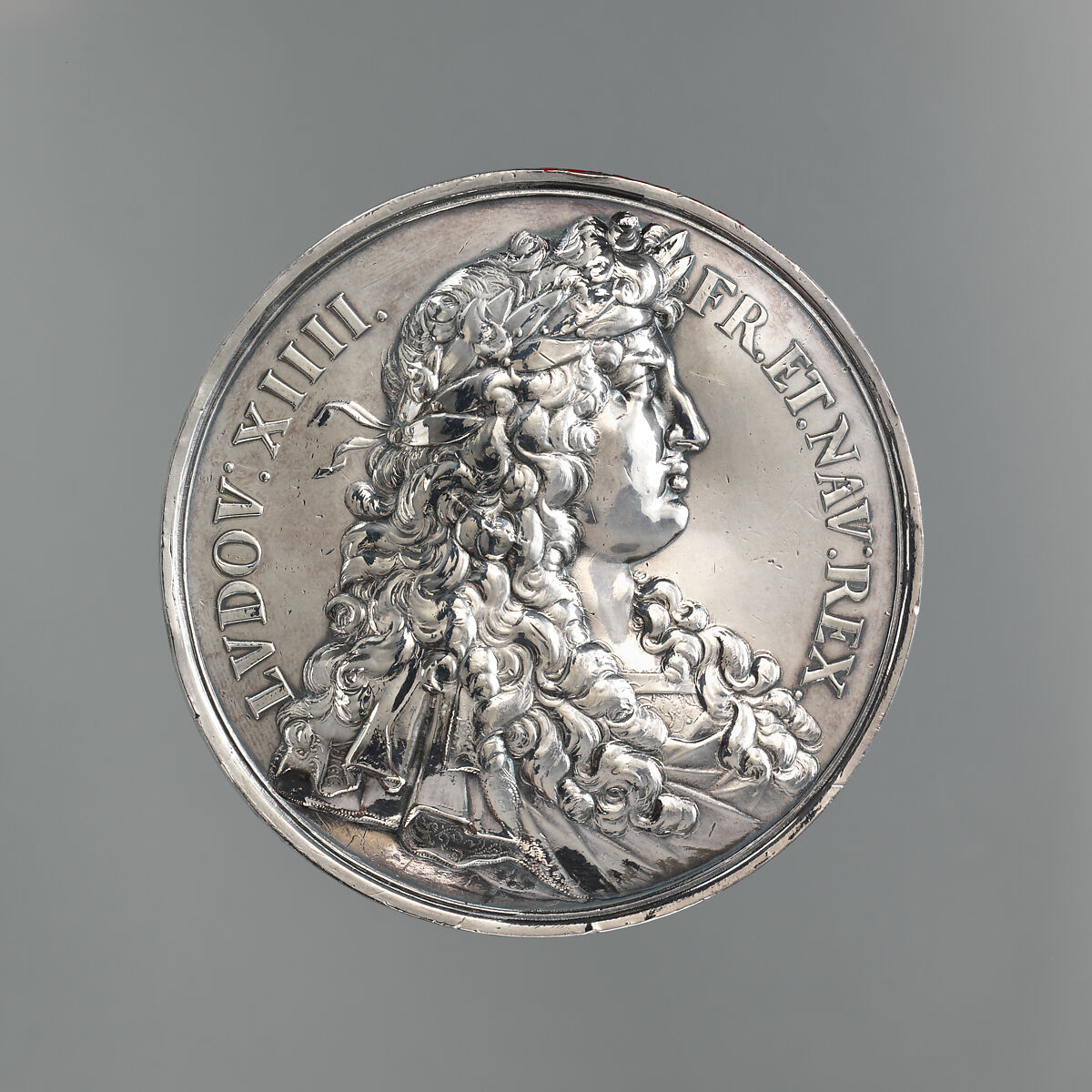 The magnificent portrait of Louis XIV is in extremely high relief for a struck medal revealing a virtuosic application of the medallist’s art. It is unusual for such a superlative work not to have been signed by its engraver. But the lack of signature in itself speaks to the high level of talent and skill typical of the designers and artisans who worked on the medallic history of Louis XIV (Histoire métallique du Roy).