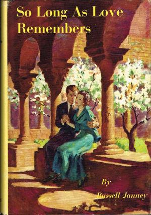 Jacket illustration for So Long as Love Remembers by Russell Janney (New York: Hermitage House, 1953) featuring the Cloister from Saint-Michel-de-Cuxa, though here apparently constructed of brick instead of pink marble.