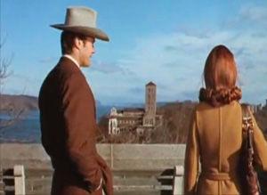 Clint Eastwood and Susan Clark take in the view of The Cloisters from the Linden Terrace of Fort Tryon Park in the 1968 film Coogan's Bluff.