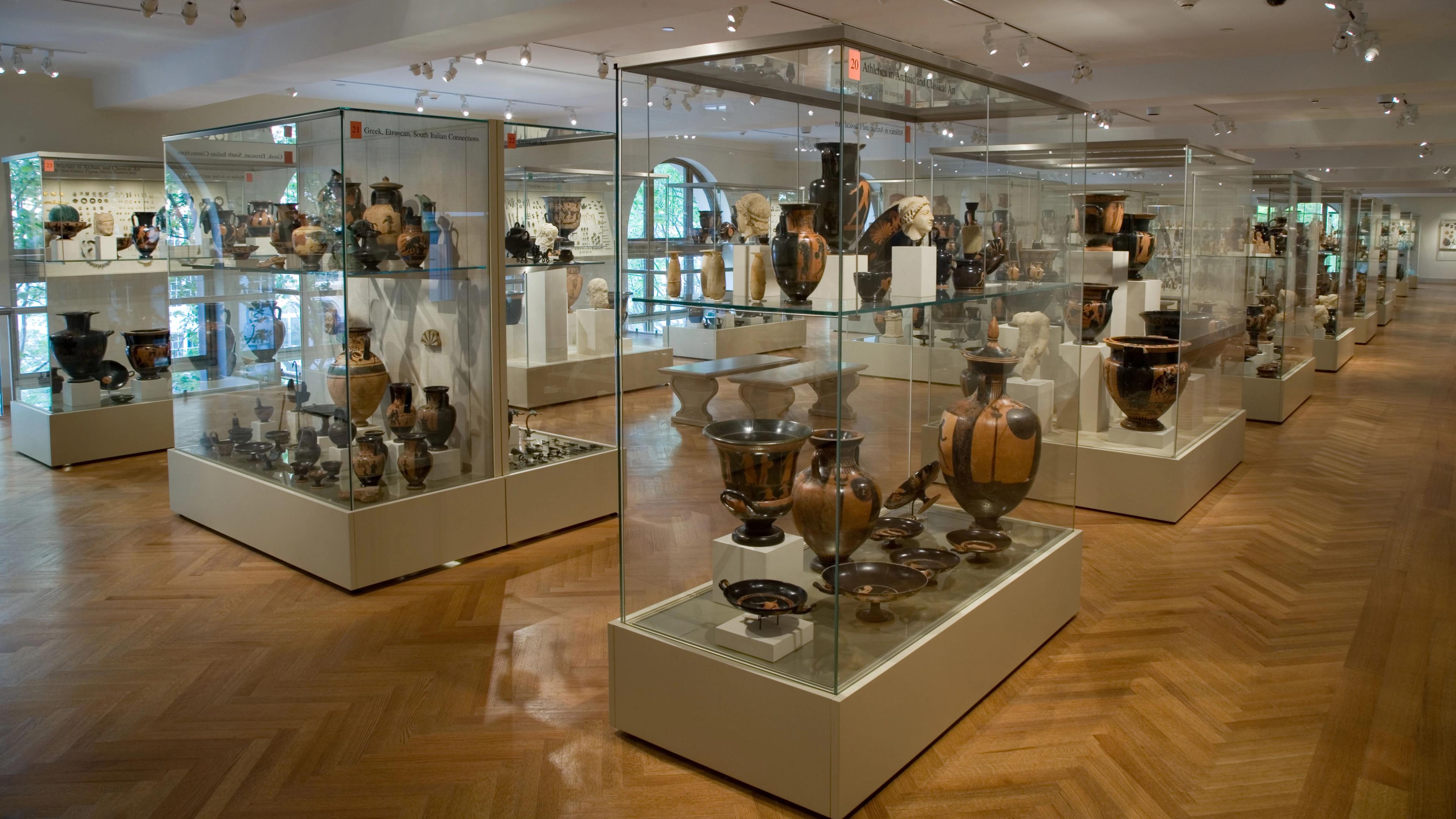 The Study Collection on the mezzanine above the Leon Levy and Shelby White Court supplements the objects on view in the primary galleries and an exhibition gallery allows for temporary displays.