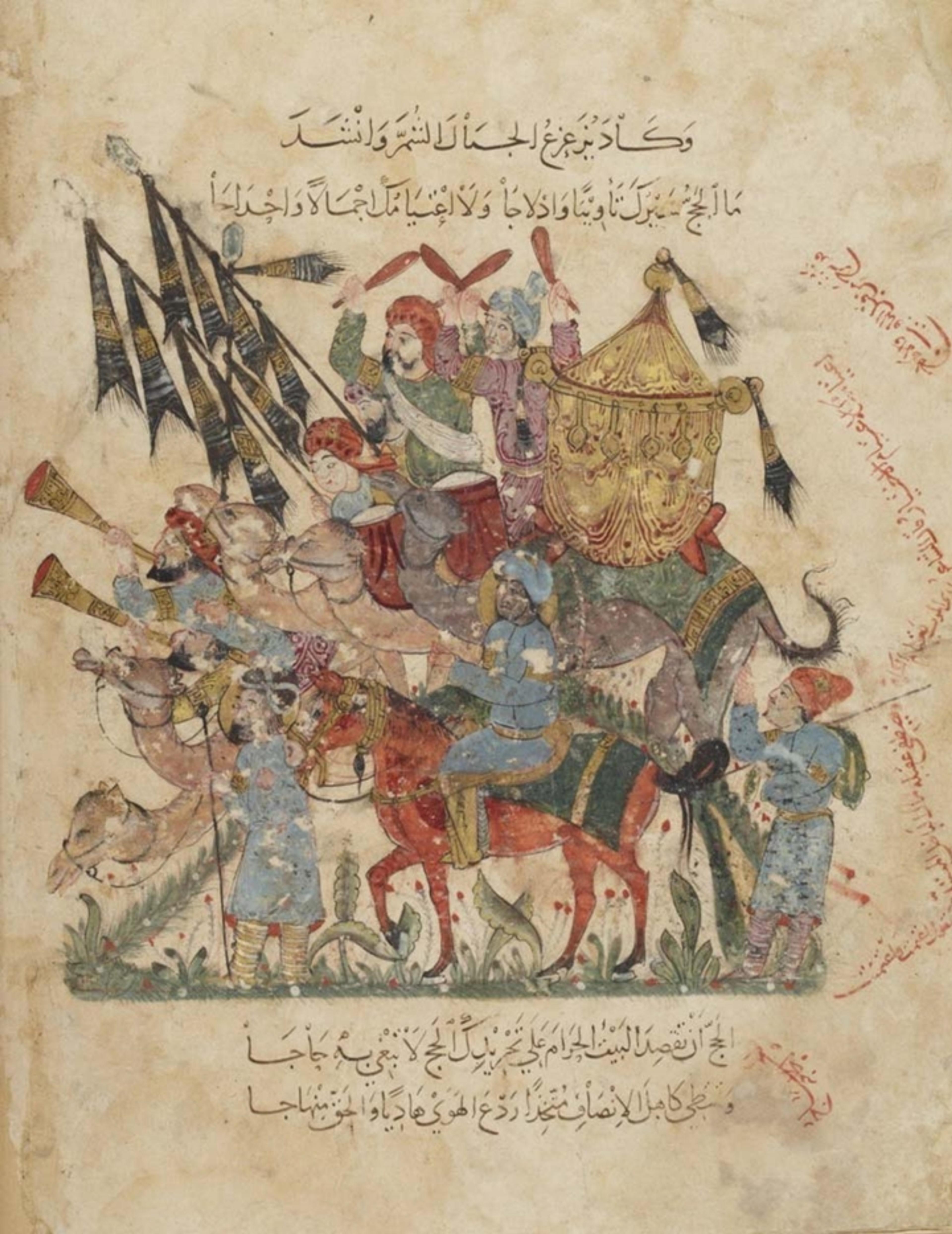 Fig. 5. Maqamat al-Hariri. Abu Zayd on Hajj and the Caravan of Pilgrimage (Maqama 31, fol. 94v), ca. 1237 A.D. Iraq. Bibliothèque Nationale de France, Arabe 5847